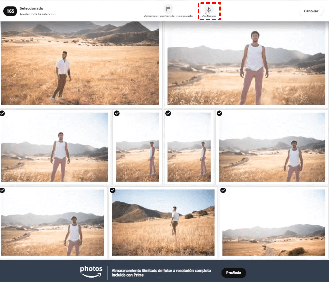 Paso 3. Selecciona las fotos y vídeos que quieras pasar a iCloud y pulsa el botón de Descargar.