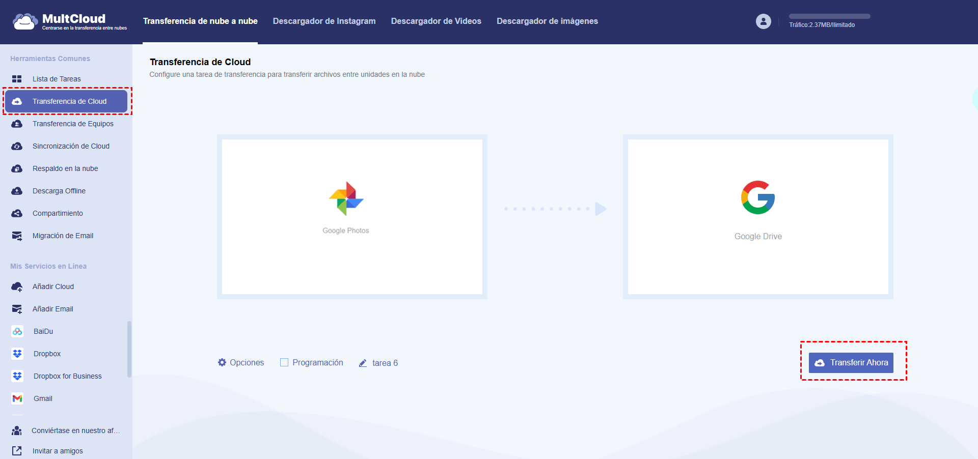 Método Auto: Pasar Google Fotos a Google Drive mediante MultCloud
