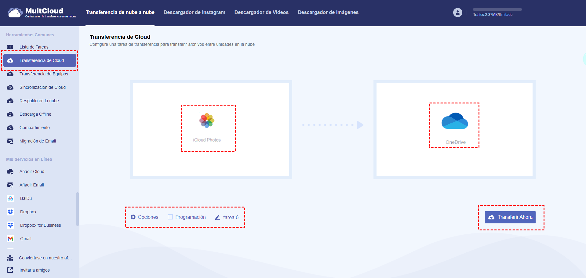 Pasar fotos de iCloud a OneDrive mediante Transferencia de Cloud