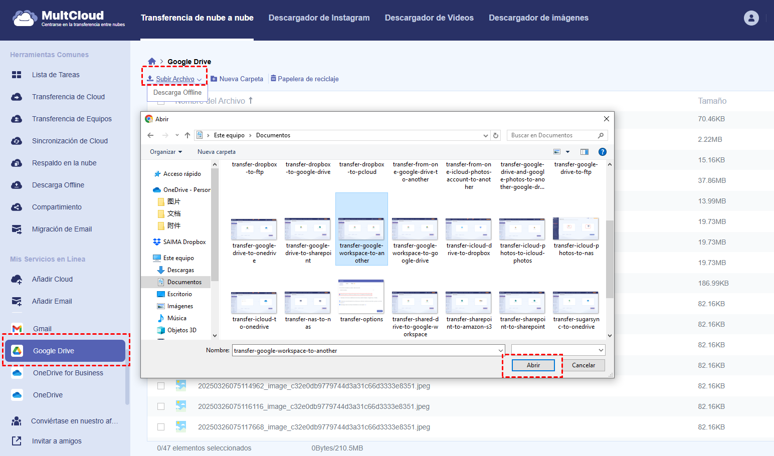 MultCloud es un asistente de gestión de la nube que permite gestionar varios servicios en la nube en un solo lugar. Actualmente, MultCloud es compatible con más de 30 unidades en la nube, como IDrive e2, iCloud Drive, iCloud Photos, Google Drive, OneDrive, Dropbox, Google Photos, Flickr, Amazon S3, FTP, etc. Por lo tanto, si no puede sincronizar archivos entre ordenadores a través de Drive para escritorio, puede utilizar MultCloud cargando y descargando.