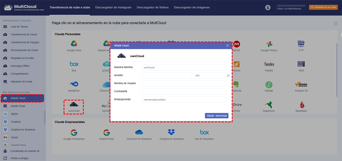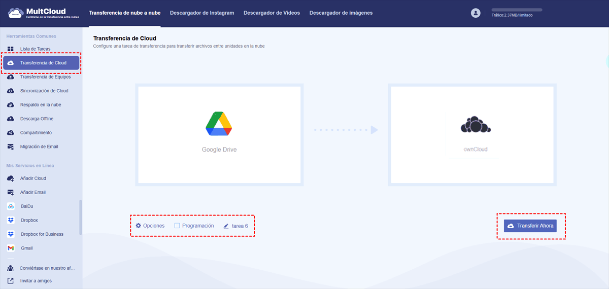 Si quieres utilizar los archivos de Google Drive en ownCloud, normalmente tendrías que configurar el almacenamiento externo de Google Drive en ownCloud, pero este proceso puede ser bastante complicado. Por suerte, existe una solución mucho más sencilla: MultCloud, un gestor profesional de almacenamiento múltiple en la nube basado en la web, que te permite migrar datos entre nubes de forma fácil y eficiente.