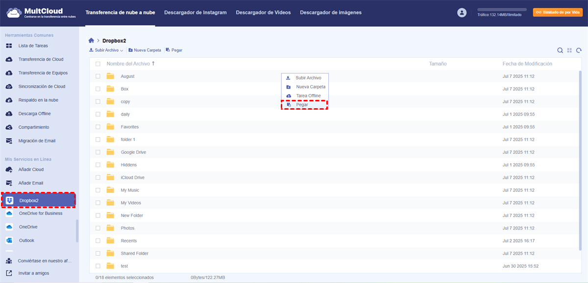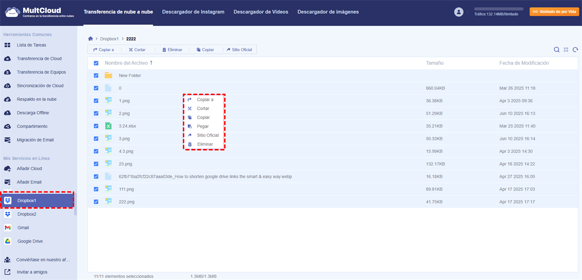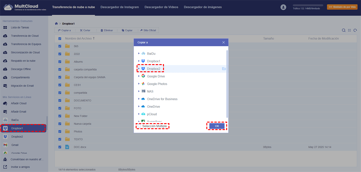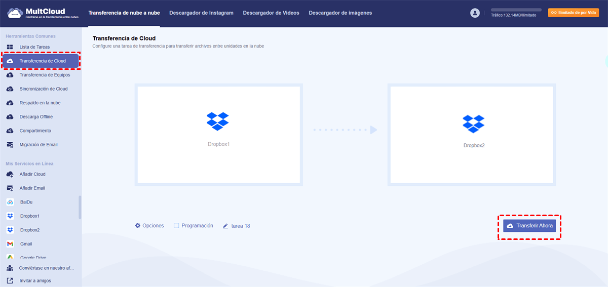 MultCloud permite conectar 2 cuentas de Dropbox para gestionar y transferir archivos entre ellas sin necesidad de descargarlos y volver a subirlos. MultCloud puede ayudarte a transferir archivos directamente de una cuenta de Dropbox a otra a través de Internet. A continuación, veremos cómo funciona.