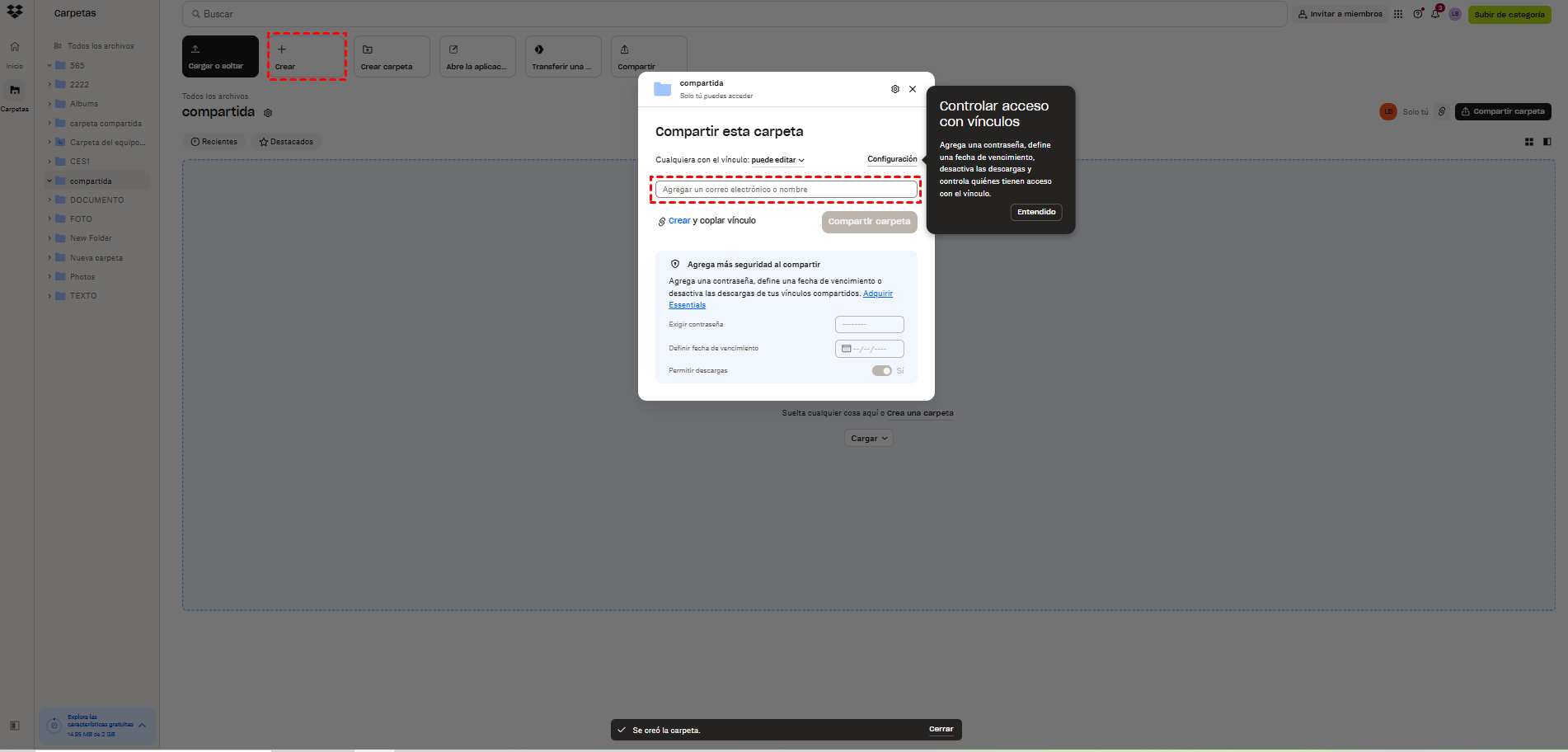 - Mientras los archivos se muevan de la carpeta compartida, ya no se podrá acceder a ellos desde el Dropbox de otra cuenta.