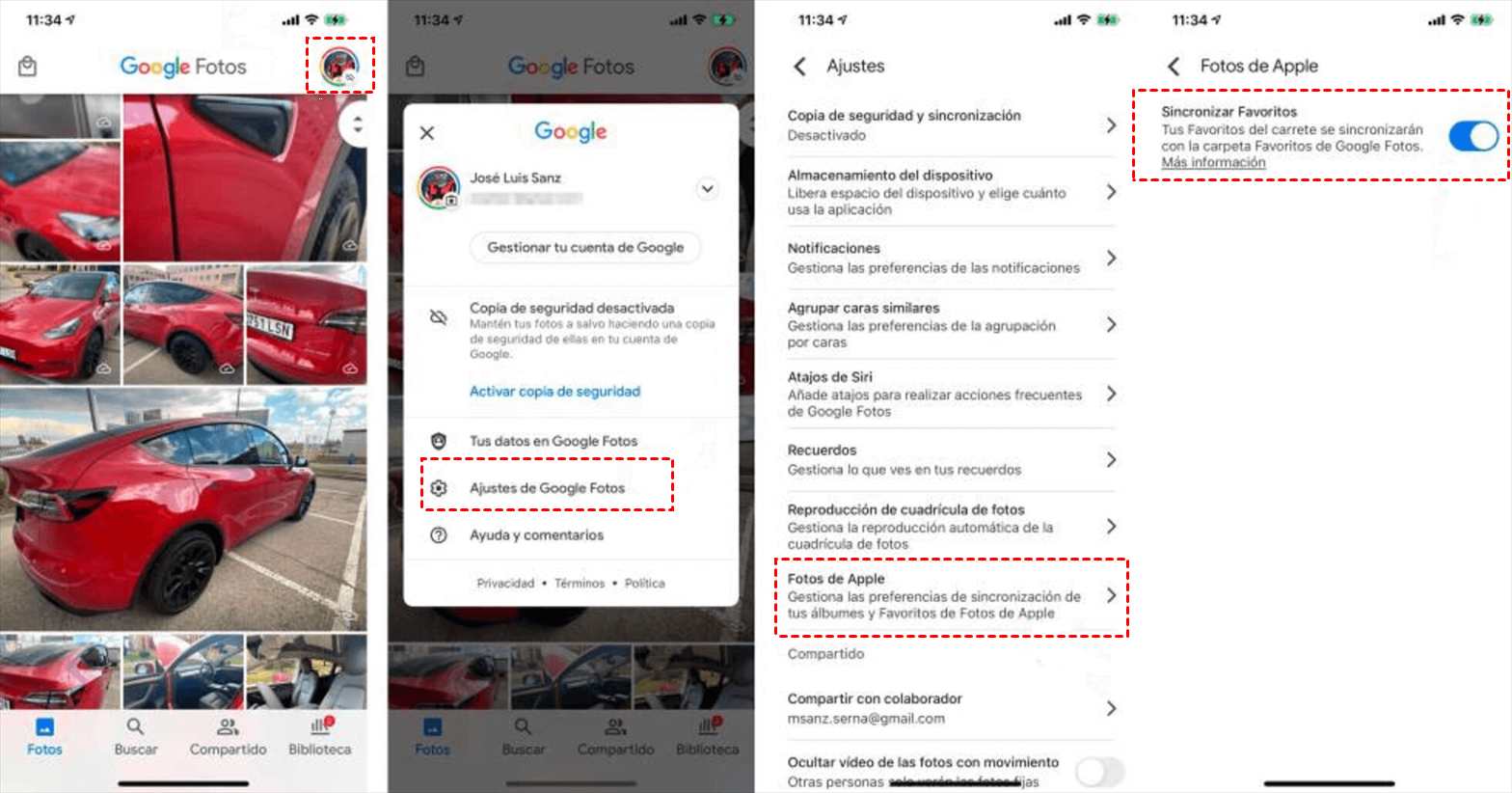 3. A continuación, selecciona Ajustes de Google Fotos > Fotos de Apple y activa la opción Sincronizar favoritos.