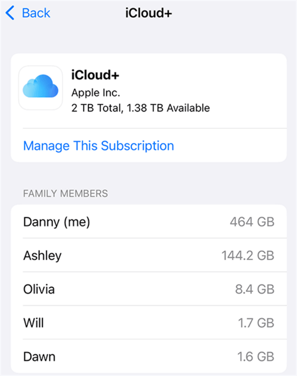 2. Personal Data Backup: You can use your Apple ID and iCloud Backup for each device. No member can access another member's backup.