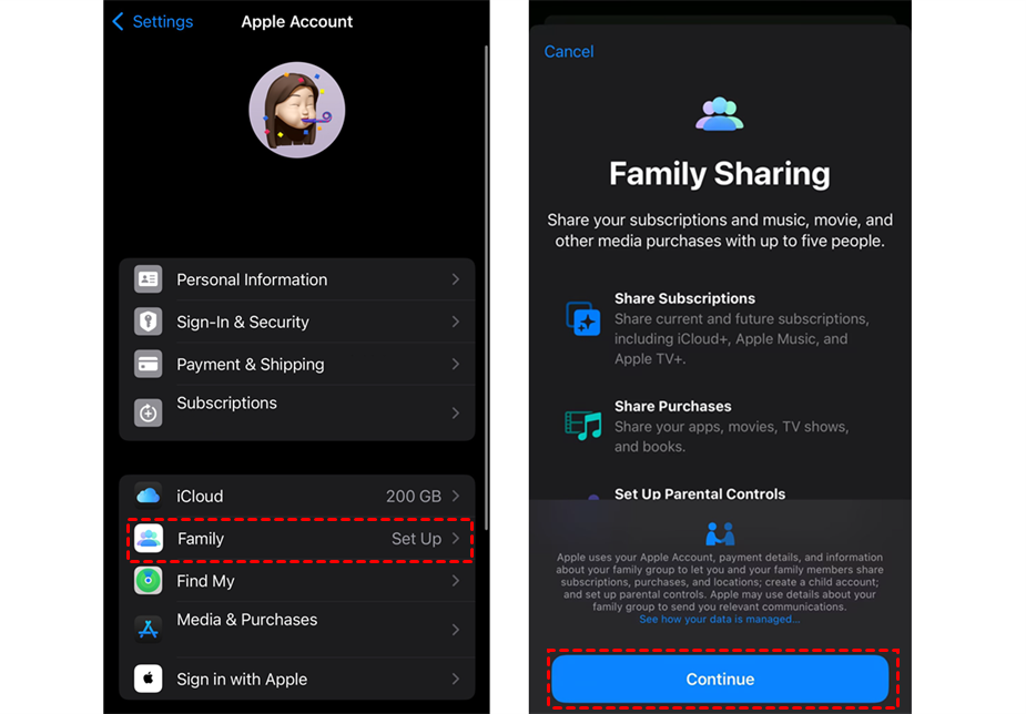 Step 3. Choose Family and follow the onscreen instructions to set up your family.