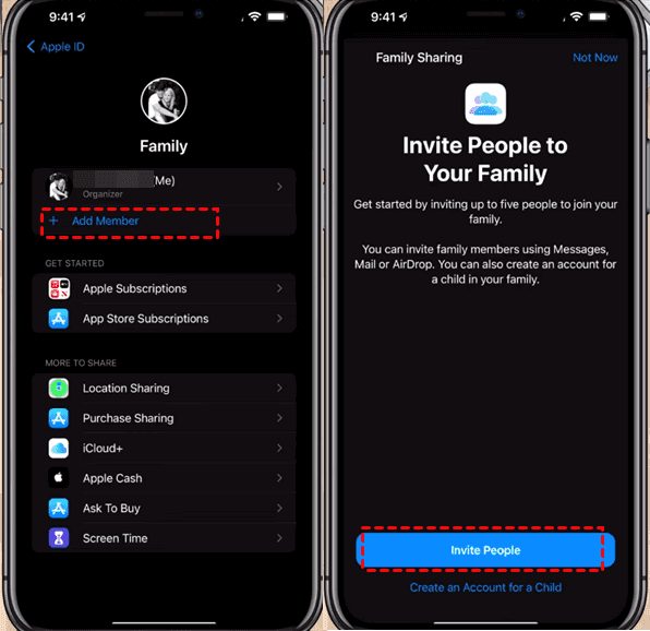 let's set up Family Sharing from scratch, which is ideal if you haven’t used this feature before. This method will guide you through setting up Family Sharing, inviting family members, and sharing your iCloud storage plan.