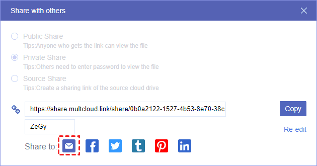 If you want other friends to access Google Drive files no matter what email they are using, Yahoo Mail, Hotmail, Gmail, or Outlook, etc., you can take advantage of the powerful web-based multi-cloud storage manager - MultCloud, because it allows you to share any cloud files in different ways, like in a private way (password protected), or a public way, etc.