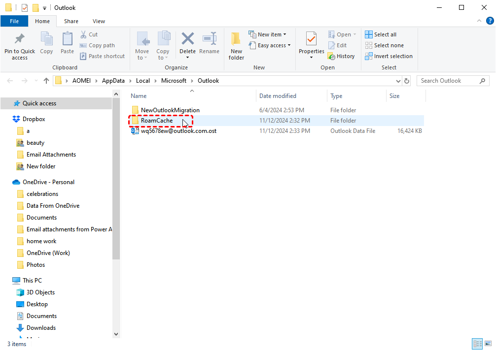 - Click the folder entitled "RoamCache."