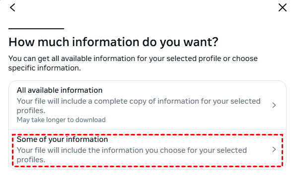 Step 1. Choose "Some of your information" if you only want to export the chat messages.