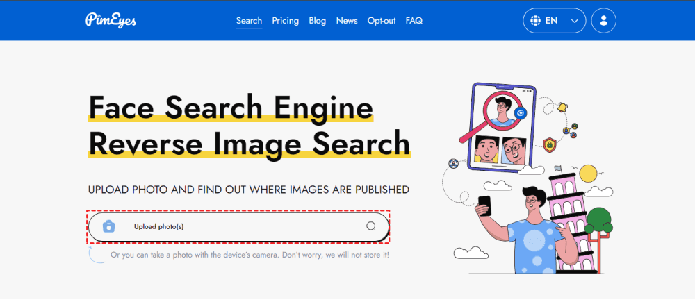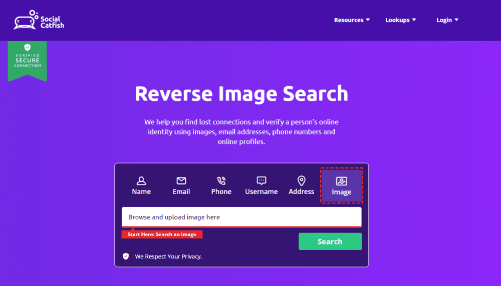 Social Catfish is a specialized tool designed to help you find social media profiles using photos. It's especially useful if you're dealing with more elusive images. However, it only allows you to upload images to search instead of inputting an image link.