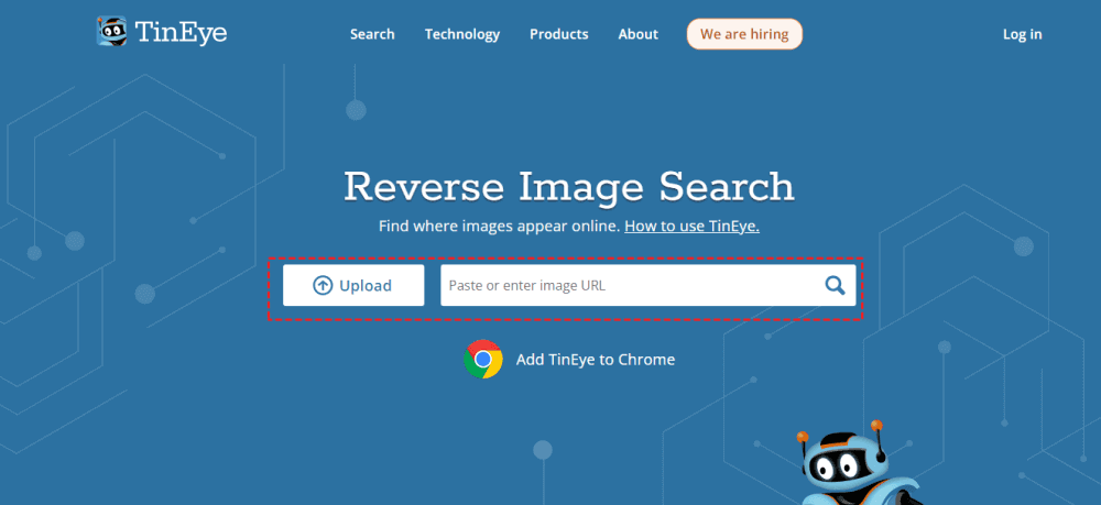 - Visit TinEye: Open your browser and go to the TinEye website.