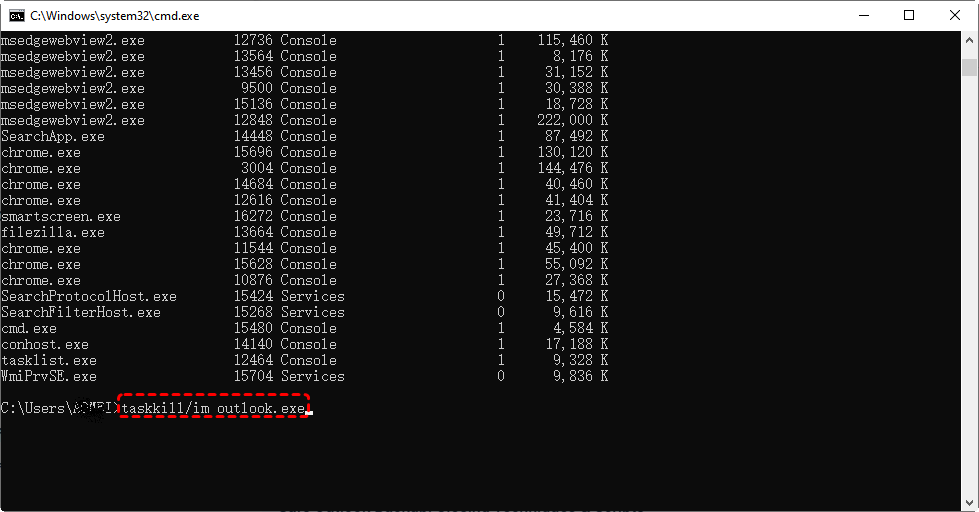 Step 3. Terminate Outlook Process: Type the following command and press Enter: