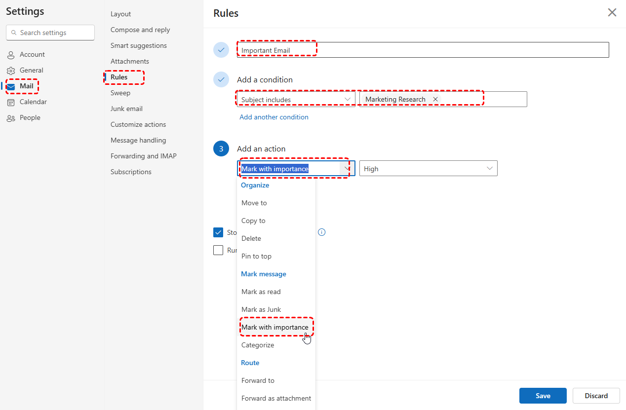 Step 4. Select "Mark as Importance" in the "Add an Action" section.