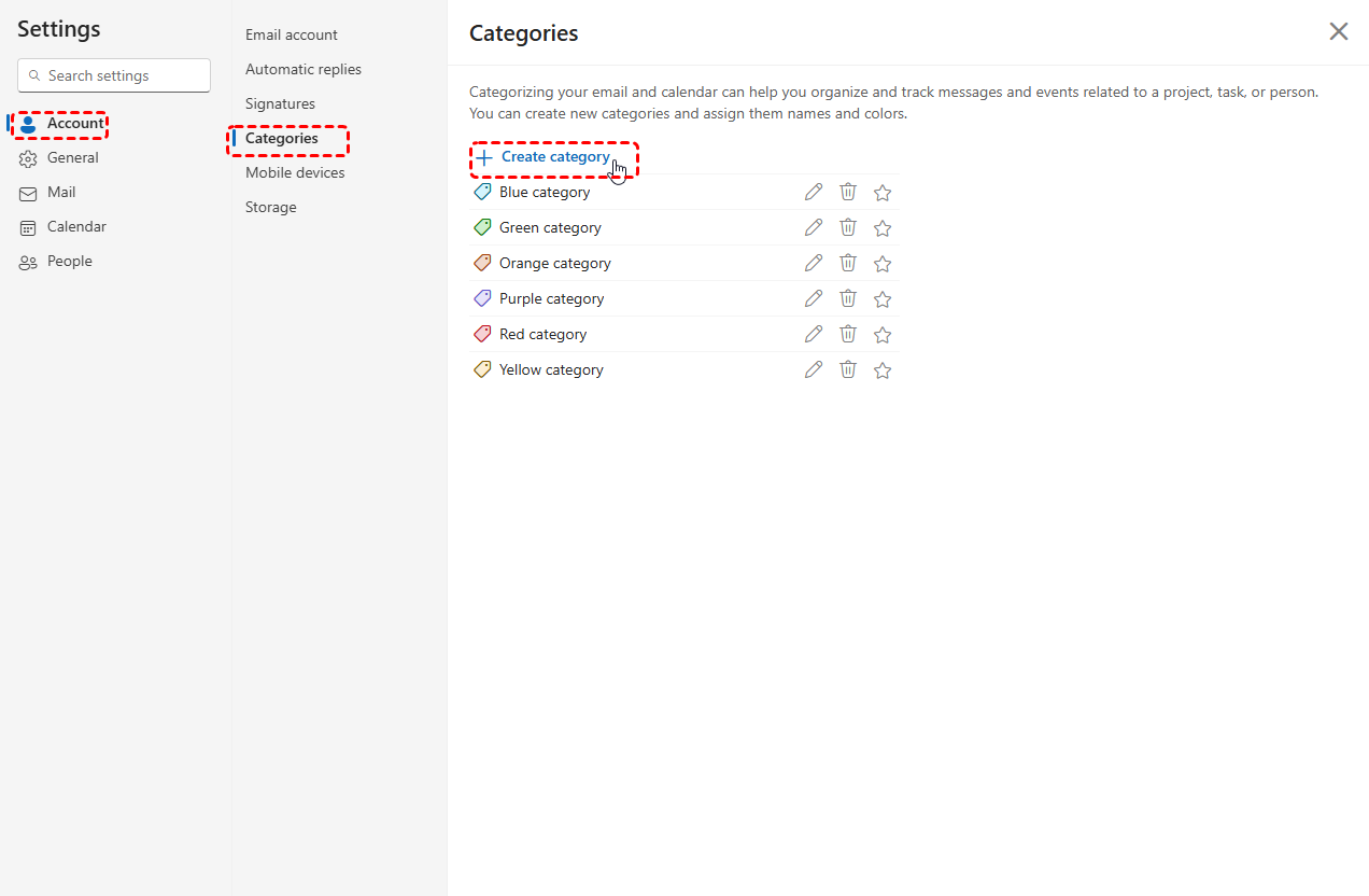 Step 2. In the Setting window, click "Account" -> "Categories"- "+Create category".