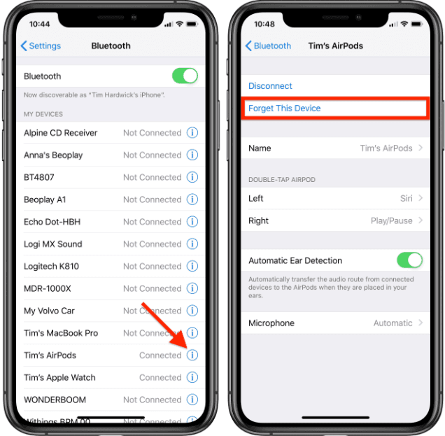5. Tap "Forget This Device" next to the AirPods you want to remove.