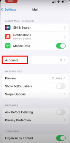 Step 2. Tap on "Mail": Select the "Mail" option.