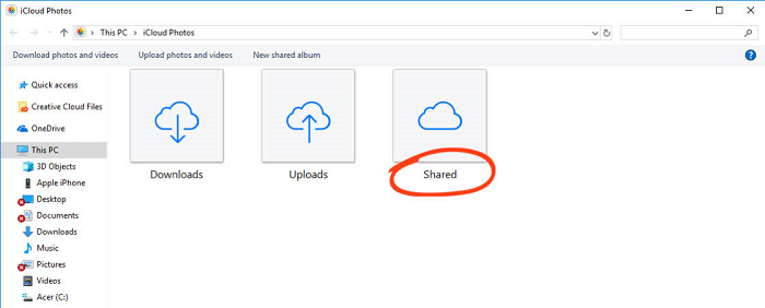 Step 6: In "iCloud Photos", find the "Shared" section. All shared albums you have access to will be stored in this section. Double-click a shared album to view photos and videos in it.