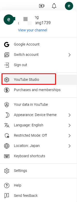 Step 2. Then a drop-down menu appears, select "YouTube Studio".