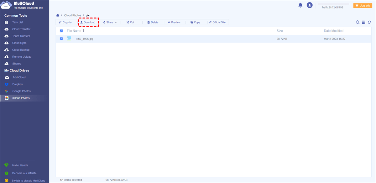Looking for a better tool to manage your content in iCloud Photos? Here you can consider trying MultCloud. It is a famous and professional multi-cloud management tool. That is to say, you can add all your cloud drive accounts into it for centralized management without frequenly switching cloud services interface.