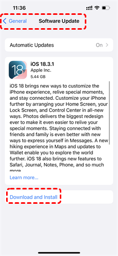 Step 2. Download and install: If updates are available, download and install them to ensure you're using the latest versions of your device's software and iCloud.
