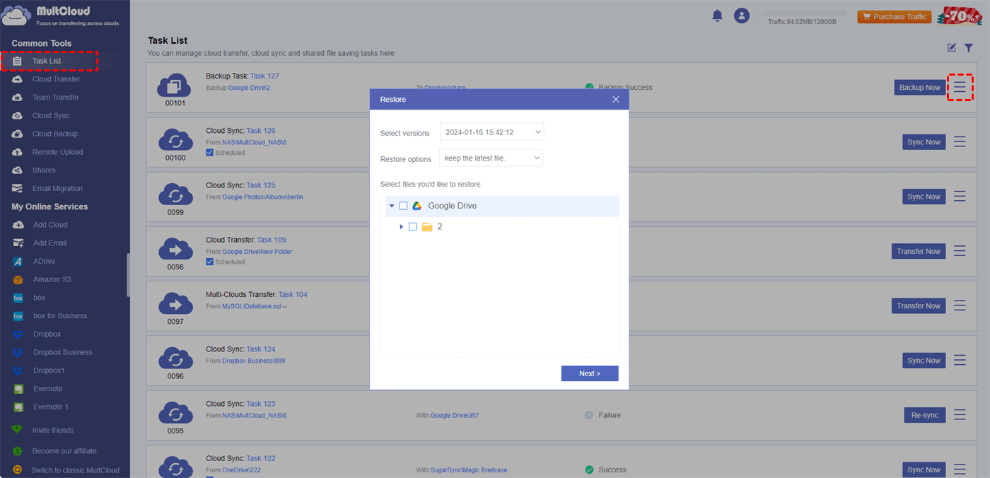 It is quite easy to use MultCloud Cloud Backup and there are steps for backing up Google Drive to Dropbox.