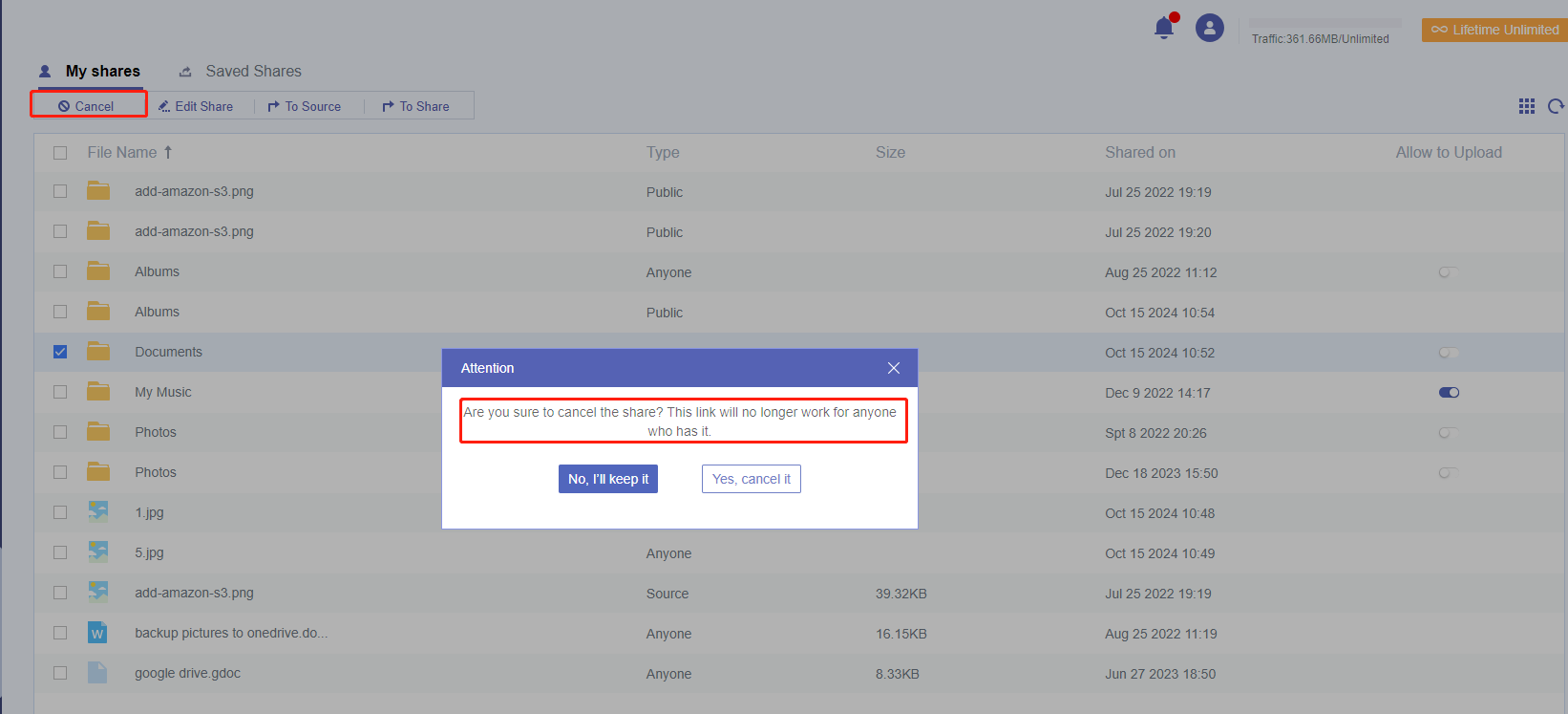 Last but not least, we would like to share you with a powerful multi-cloud management tool named MultCloud. Trusted by over 3 million users, It facilitates the basic management, advanced transfer or synchronization of files between various cloud services. This service allows you to create either public share and private share (set password to protect the shared data). Moreover, you can easily cancle it at any time.