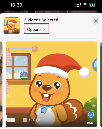 - In the Share sheet, tap on "Options" at the top under items you selected. Next, tap "Individual Items" from the list, which means the chosen files will be shared as their original files. Tap "Done" to finish.