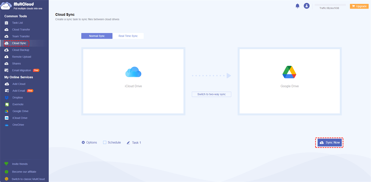 4. Press the Sync Now button to migrate iCloud Drive to Google Drive smoothly.