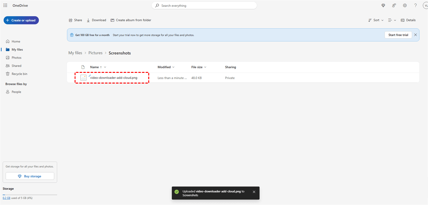 - To start the upload process, click the "+ Create or upload" button in the left sidebar and then choose "Files upload" or "Folder upload". After that, you can drag and drop files or folders into the OneDrive folder to upload files to OneDrive. Once the upload starts, you'll see three blue lines indicating that it's syncing.