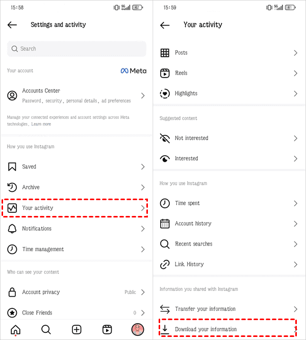 6. Download Your Data: Once completed, go to Download your information to download the Instagram data.