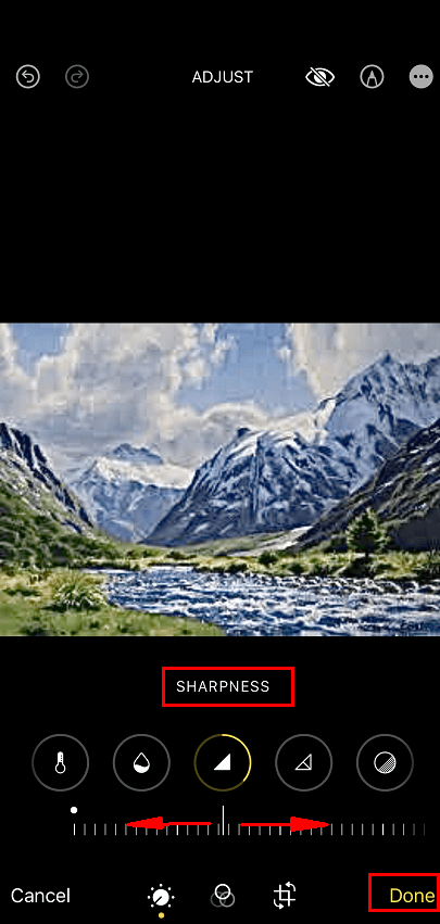If you wish to increase the sharpness attribute to make a picture less blurry on your iPhone, then you can take advantage of the built-in Photos app to adjust the sharpness.