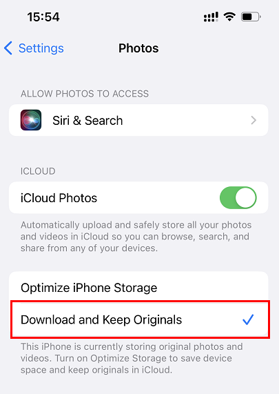 - Optimize iCloud Settings: Enable iCloud Photo Library and select "Download Originals to My iPhone" to ensure that your photos are stored in their original quality.