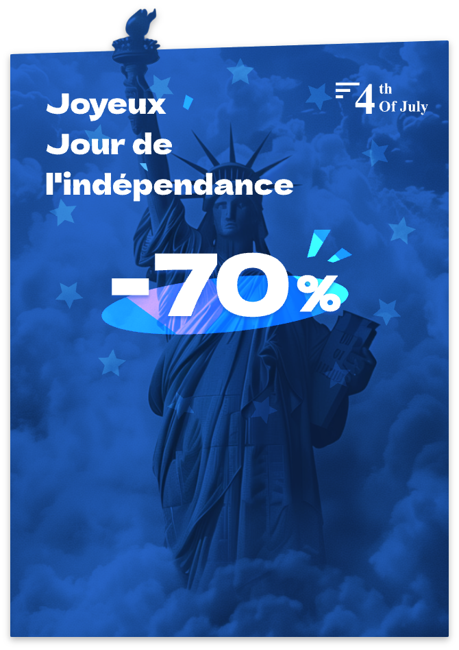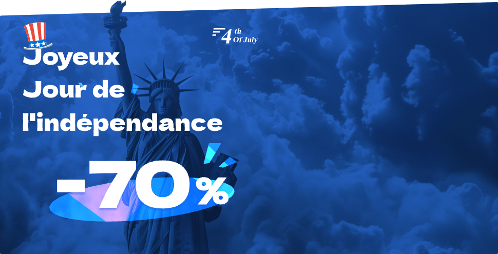 Nous célébrons le 4 juillet avec jusqu'à 70% de RÉDUCTION pour les plans ILLIMITÉS.