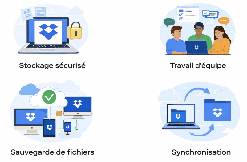Dropbox est un service d'hébergement de fichiers basé sur le cloud qui permet aux utilisateurs de stocker et de partager des fichiers et des dossiers en toute simplicité. Il offre des interfaces conviviales sur divers appareils, permettant une synchronisation et un accès sans effort.
