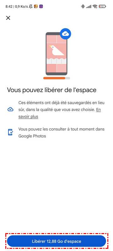 Conséquence de la libération d'espace dans l'application Google Photos