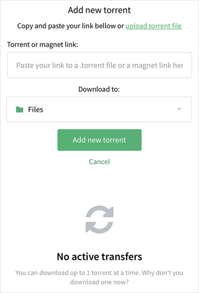 Étape 2 : Cliquez sur « Ajouter un torrent » dans l’interface du site Bitport.