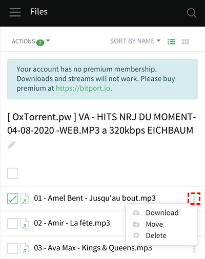 - Bitport n'étant pas seulement un client torrent, mais également un service de stockage cloud, les fichiers que vous ouvrez à partir de celui-ci resteront stockés dans le cloud, sauf si vous les supprimez vous-même.