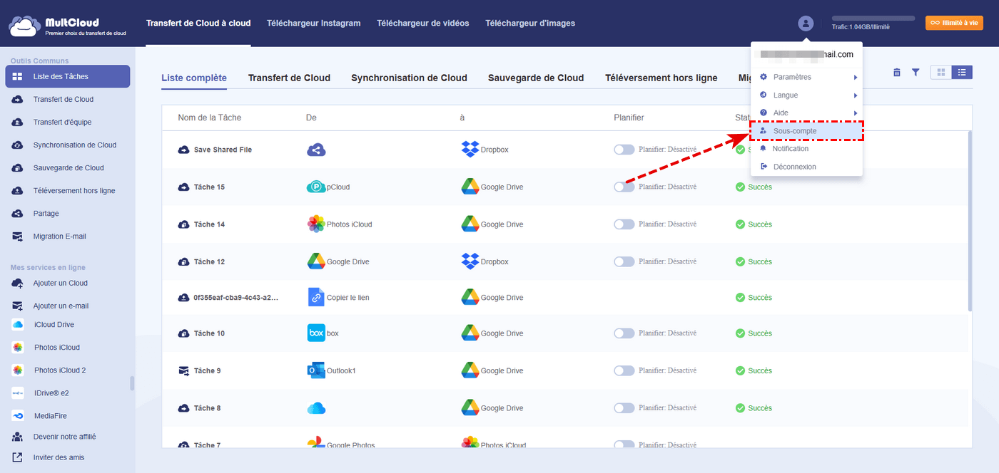 Voici comment utiliser un sous-compte avec MultCloud pour partager des fichiers avec d'autres personnes :