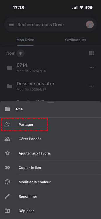 Solution 2 : Comment partager des fichiers volumineux via l'application mobile Google Drive