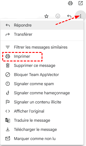 Si vous n'avez que quelques e-mails à convertir, vous pouvez essayer la méthode classique de conversion via Gmail Print. Cette méthode est utilisable sur téléphone et ordinateur. Cependant, avec Gmail Print, vous ne pouvez convertir qu'un seul e-mail à la fois en PDF. Si le nombre d'e-mails à convertir est important, cette méthode peut s'avérer fastidieuse.