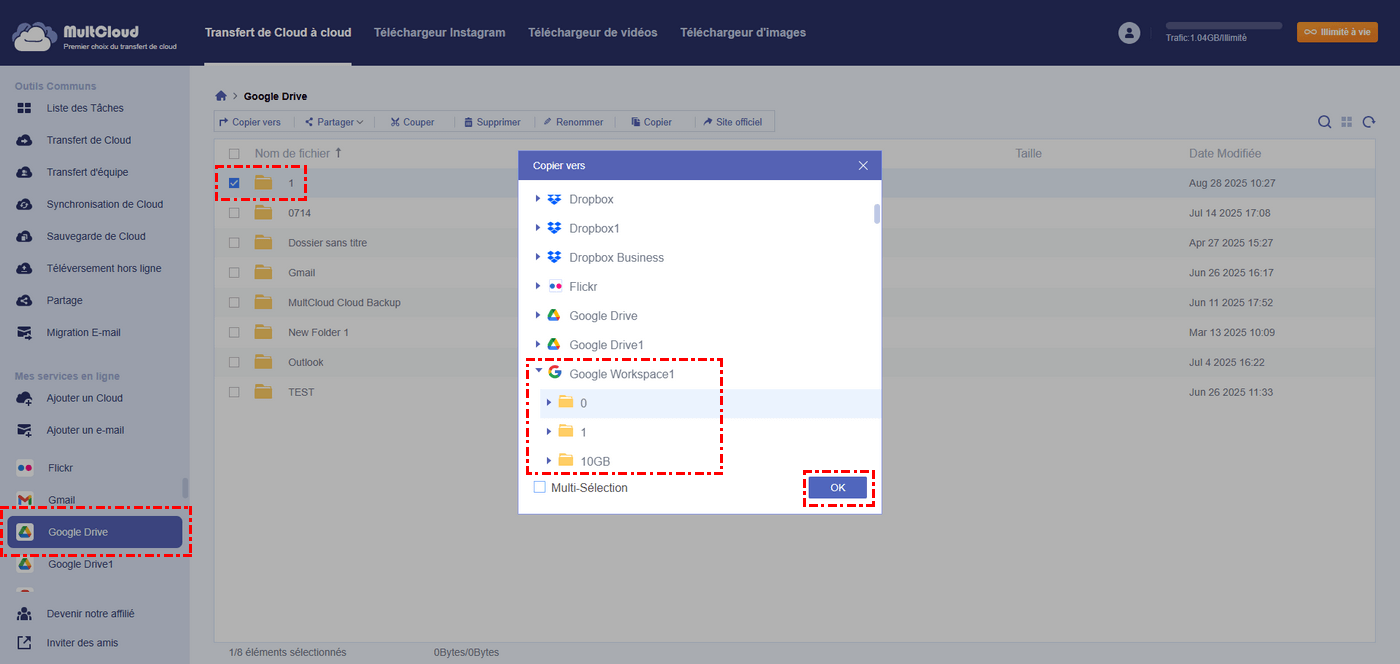 Astuce bonus : MultCloud permet de copier des dossiers entre des comptes Google Workspace
