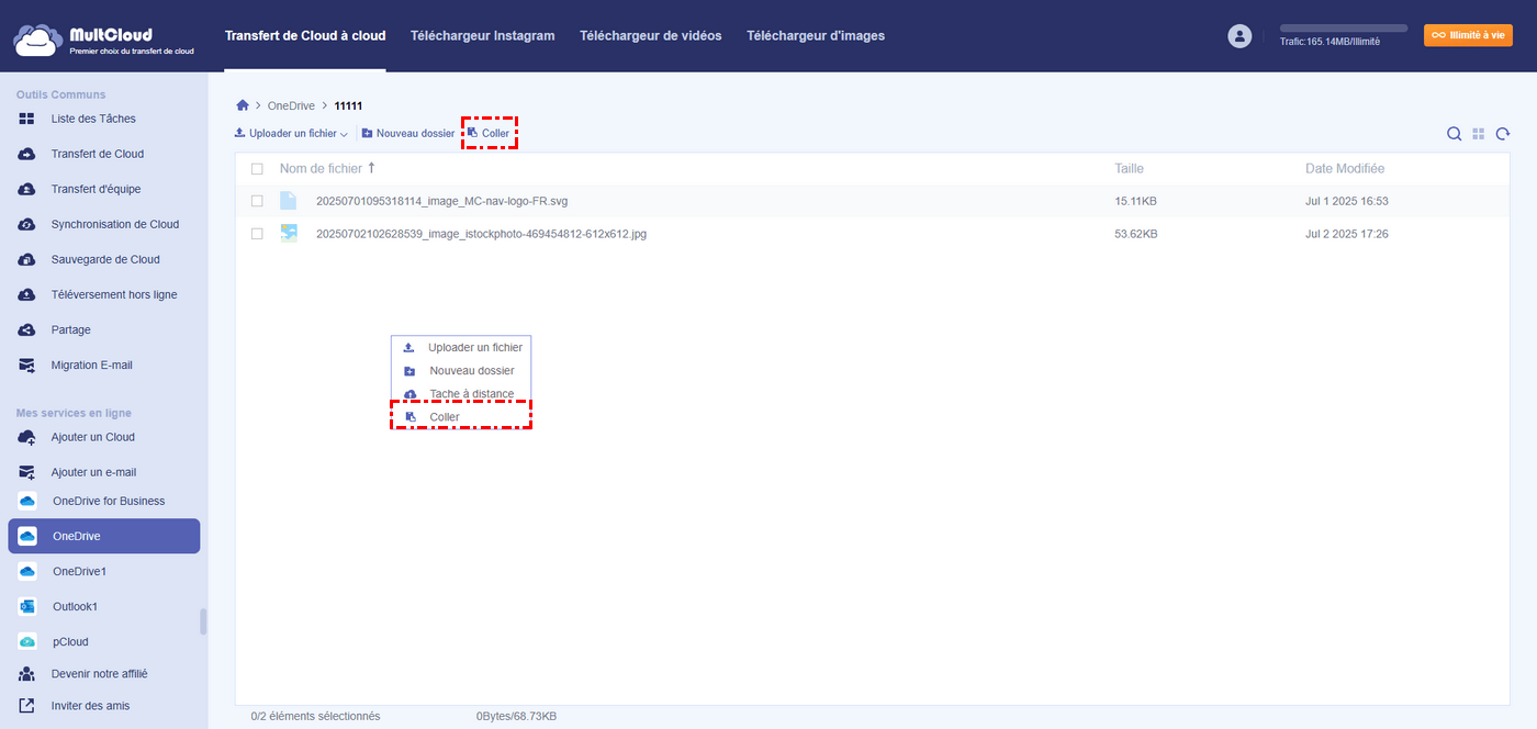 MultCloud est un gestionnaire de fichiers cloud gratuit qui vous permet d'ajouter tous vos disques cloud dans une seule interface. Vous pouvez utiliser Transfert de Cloud ou Synchronisation de Cloud pour transférer ou synchroniser des fichiers et des dossiers d'un cloud directement vers lui-même ou vers un autre cloud. Vous pouvez également gérer des fichiers en ligne stockés sur plusieurs clouds avec des fonctions de base telles que Télécharger, Uploader, Couper, Copier, Coller, Supprimer, Renommer, etc.