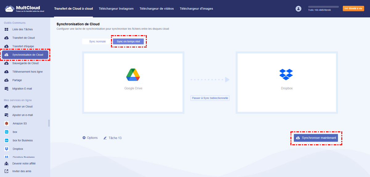 Méthode 2 : Synchroniser Google Drive avec Dropbox en temps réel via Synchronisation de Cloud