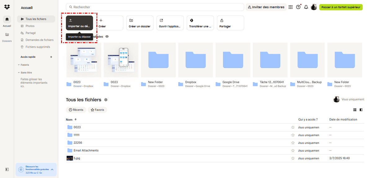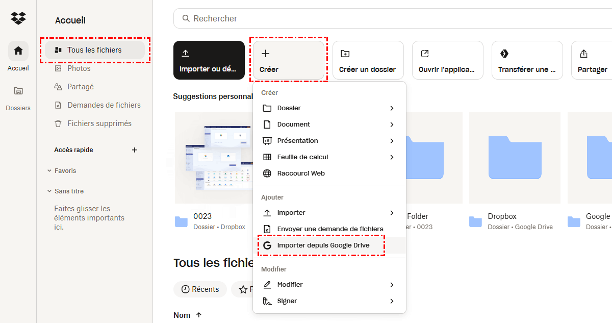 Méthode 2 : Déplacer des fichiers de Google Drive vers Dropbox via l'option Importer depuis Google Drive