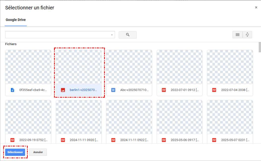4. Sélectionnez des fichiers ou des dossiers dans Google Drive, puis cliquez sur « Sélectionner ».