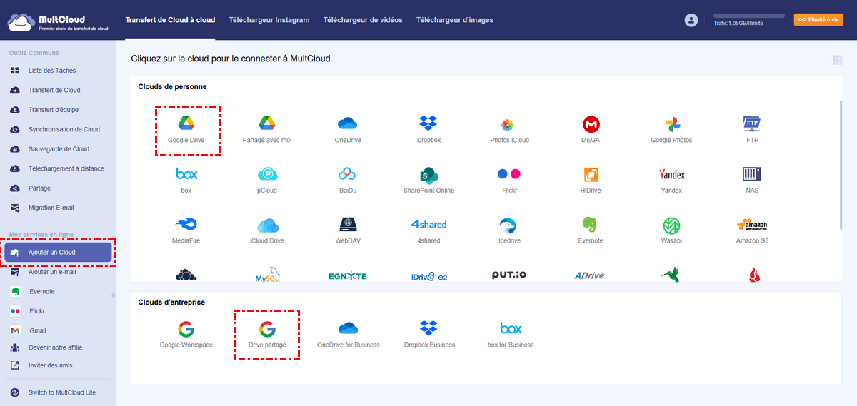 Méthode 2. Via un outil professionnel de Transfert de Cloud-à-cloud
