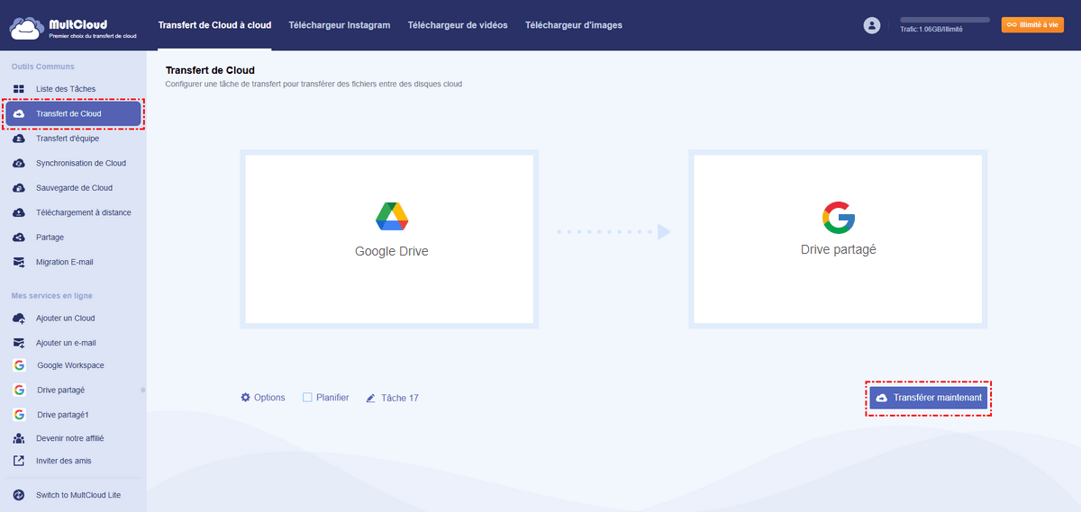 - Déplacer facilement des Google Docs de Mon Drive vers des lecteurs partagés de comptes différents via "Transfert de Cloud" proposé par un service professionnel de gestion multi-cloud.