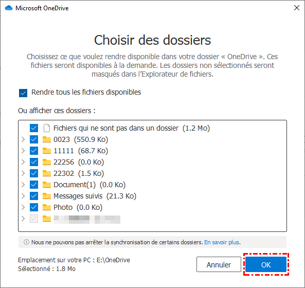 Si vous vous demandez comment arrêter la synchronisation OneDrive d'un dossier, vous pouvez utiliser la fonctionnalité de synchronisation sélective. Cette méthode vous permet de sélectionner des fichiers ou dossiers spécifiques à synchroniser, tandis que d'autres restent désynchronisés. Voyons les étapes détaillées ci-dessous :