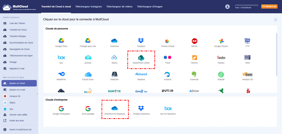 Clouds supportés par MultCloud